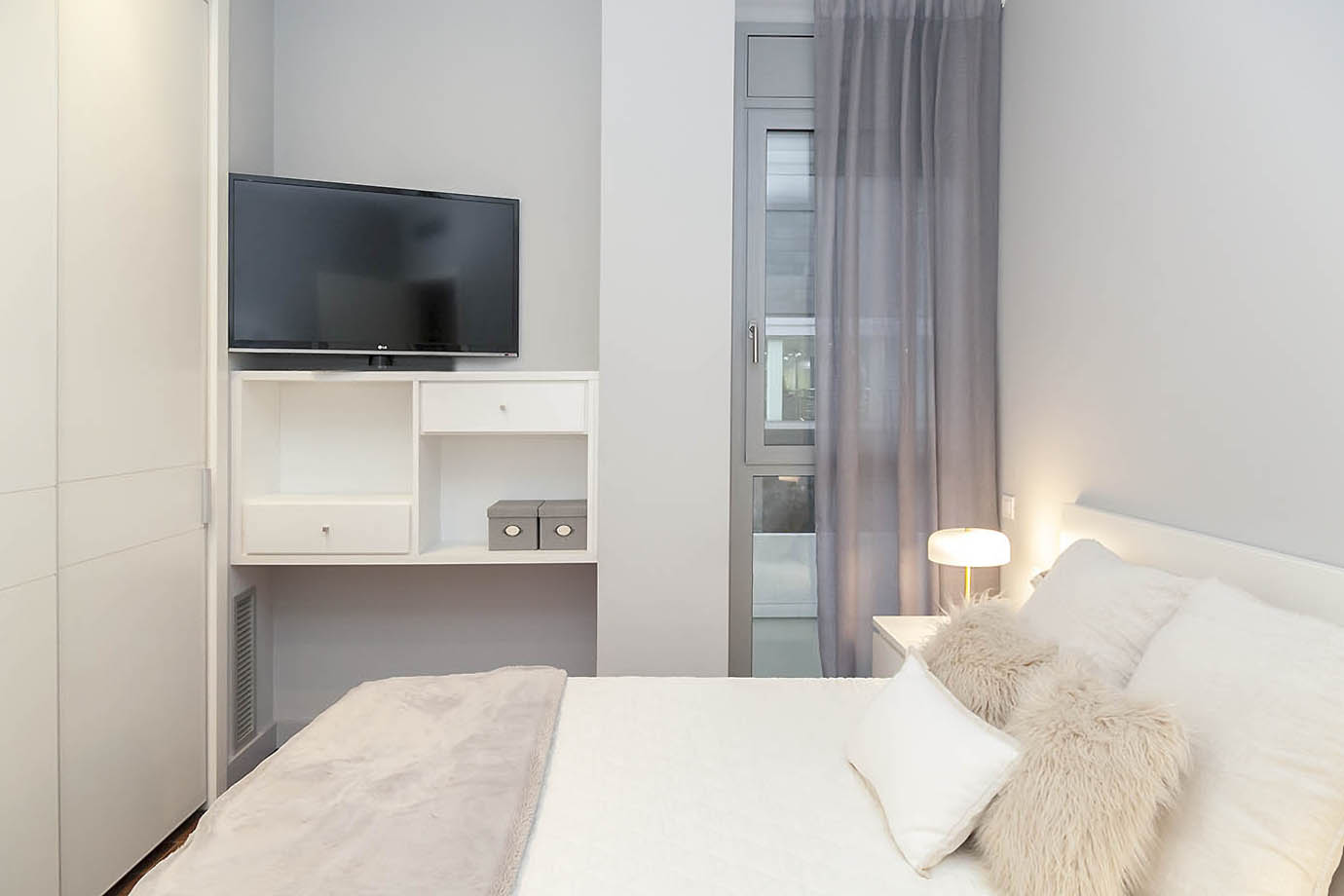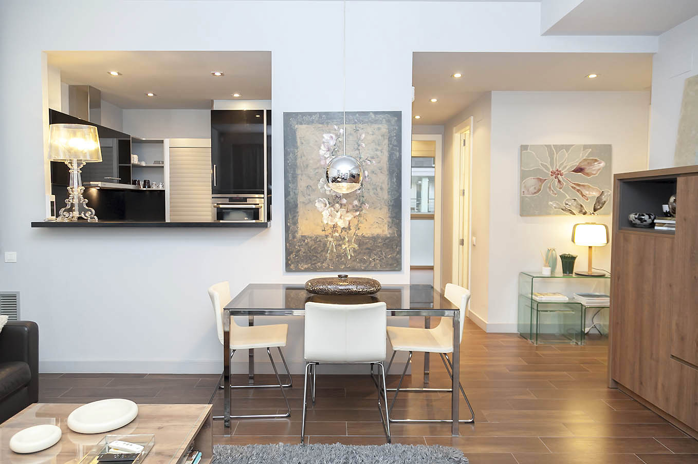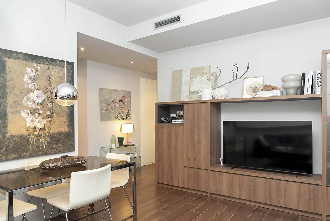 La vivienda se compone de un bonito recibidor que da acceso al salón comedor con cocina abierta, a 2 habitaciones y 1 baño completo. Ha sido diseñada con muy buen gusto, combinando elementos contemporáneos con el carácter del edificio. Se vende completamente amueblada, lista para entrar a vivir.